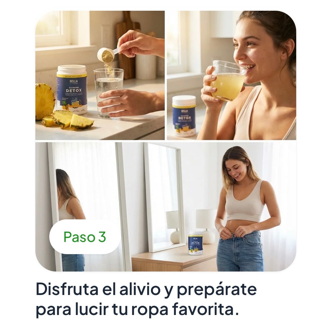 Estaba harta de no poder ponerme mis jeans favoritos. Parecía embarazada. Encontré esto por desesperación y en una semana... ¡wow! Me siento yo otra vez, mi ropa me queda increíble.